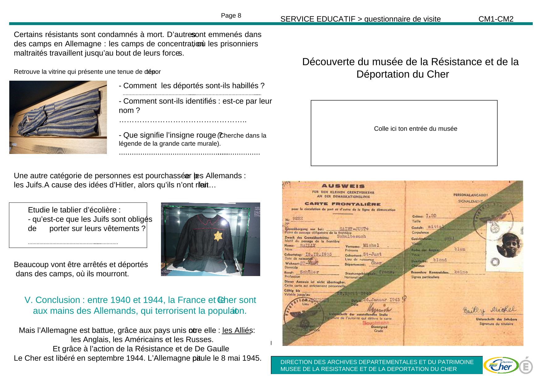 Attention, ce questionnaire est un livret de 8 pages, de format A5. Pour l’impression : 2 feuilles de format A4, recto-verso en paysage - bord court. Réduire au maximum les marges pour avoir l’ensemble du texte. Plier pour obtenir le livret.