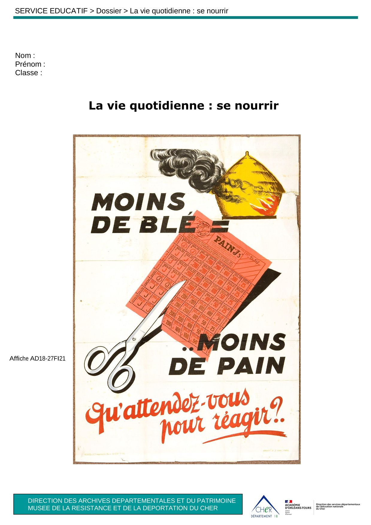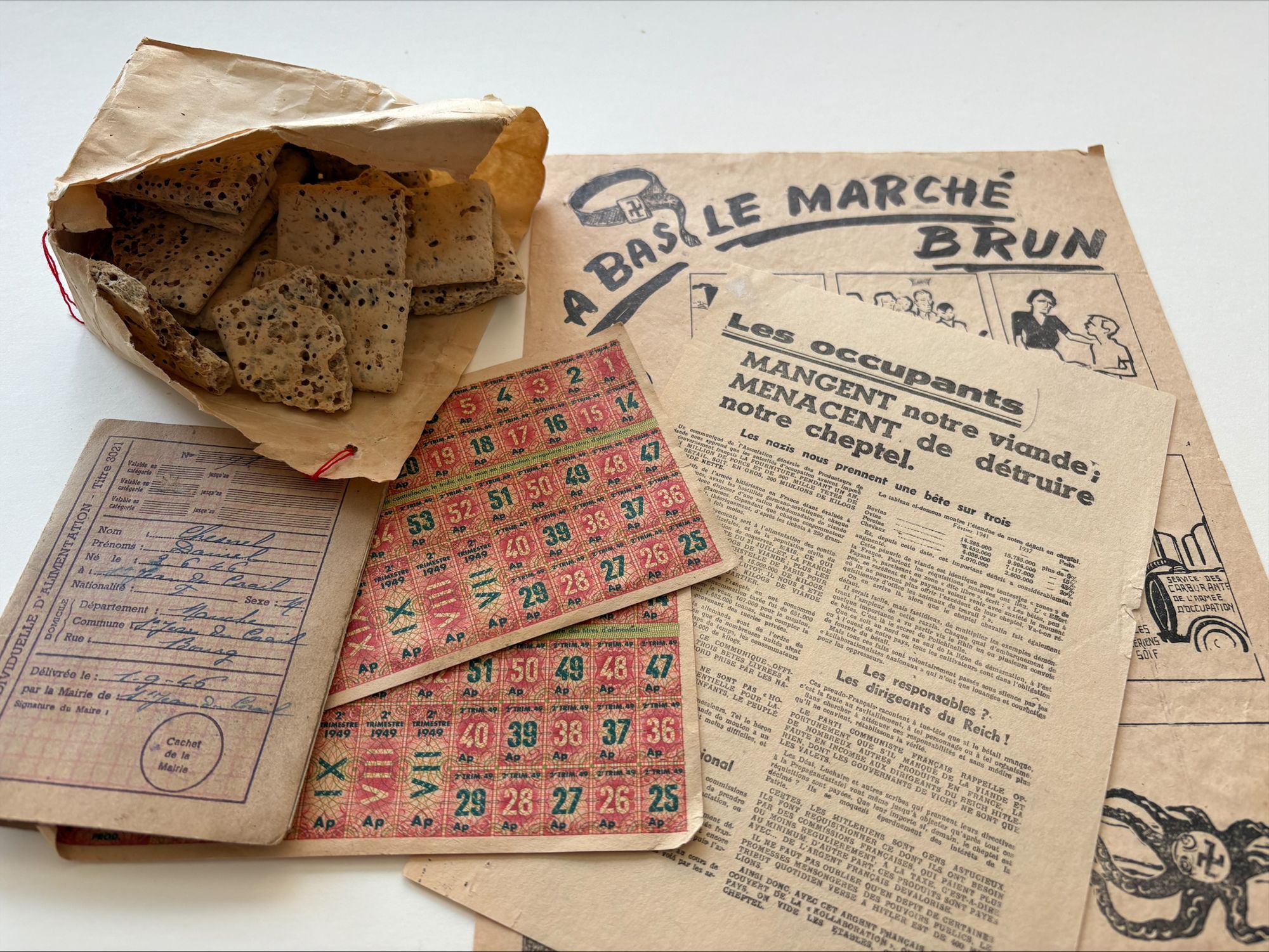 En analysant plusieurs documents d'archives, les élèves répondent à un questionnaire portant sur l’accès à la nourriture en temps de guerre, les mesures instaurées (les cartes de rationnement, le marché noir), l’impact de la ligne de démarcation et les restrictions imposées par le régime nazi.