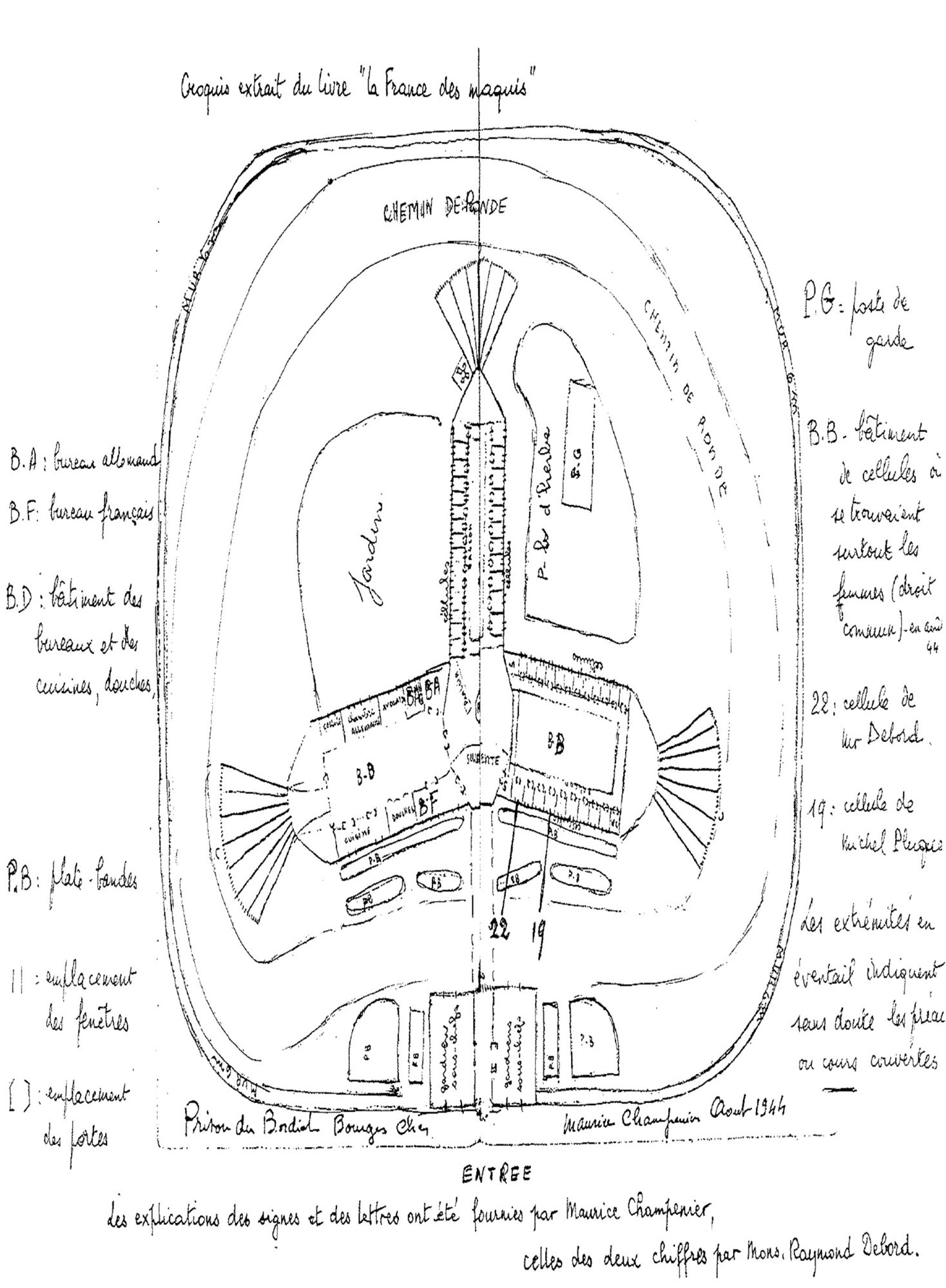 Issu d'une famille de Résistants, Maurice champenier, fut emprisonné à l'âge de 13 ans, à la prison de Bourges "le Bordiot". Il y dessina le plan afin de le transmettre à son frère aîné pour s'en échapper. Malheureusement, ce dernier décéda avant d'avoir reçu le plan.